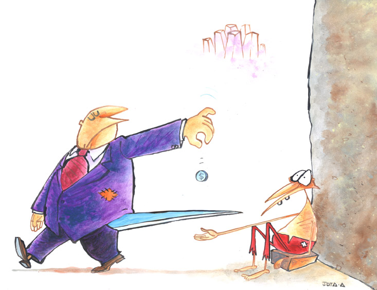 جوتا آ کارتونیست بریزیلی که اغلب طرح های و آثار او فضایی اجتماعی دارد و سعی در بیان مسایل و مشکلات روز دنیا را دارد.