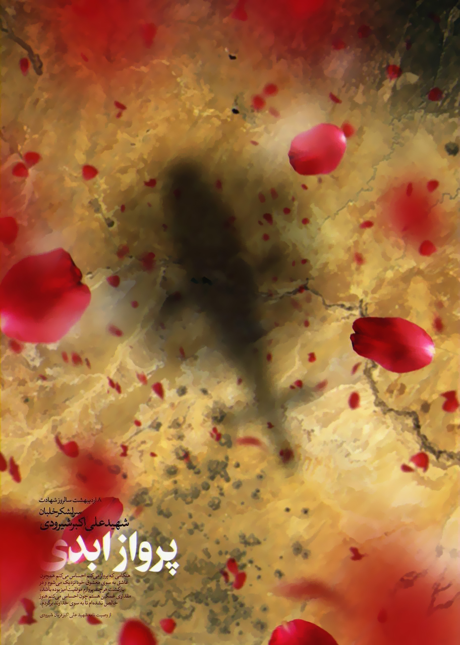 در ذیل این پوستر، فرازی زیبا از وصیت نامه این شهید بدین شرح آمده است: «هنگامی که پرواز میکنم احساس میکنم همچون عاشق به سوی معشوق خود نزدیک میشوم و در بازگشت هرچند پرواز موفقیت آمیز بوده باشد، مقداری غمگین هستم چون احساس میکنم هنوز خالص نشدهام تا به سوی خداوند برگردم.»